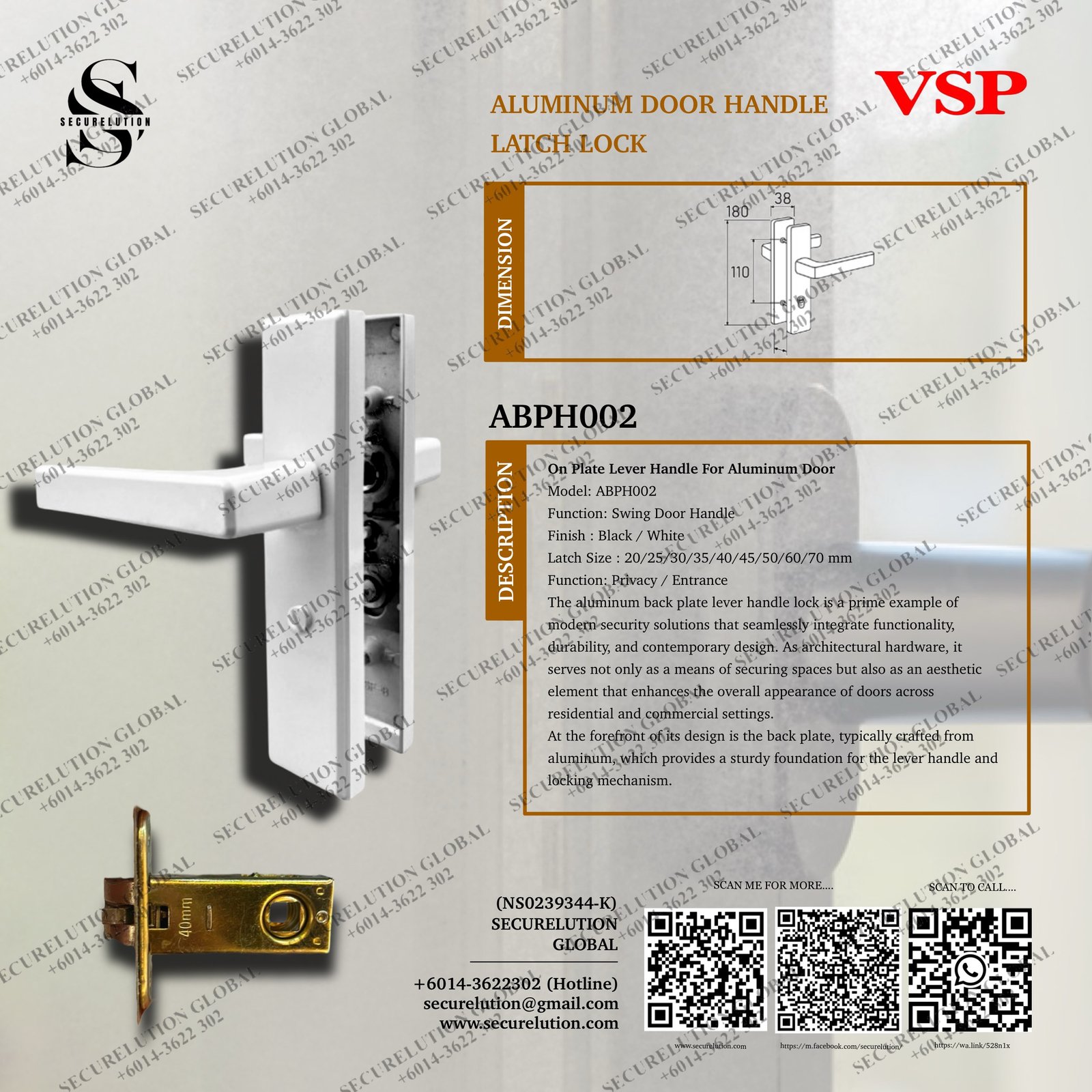 Latch Size : 20/25/30/35/40/45/50/60/70 mm