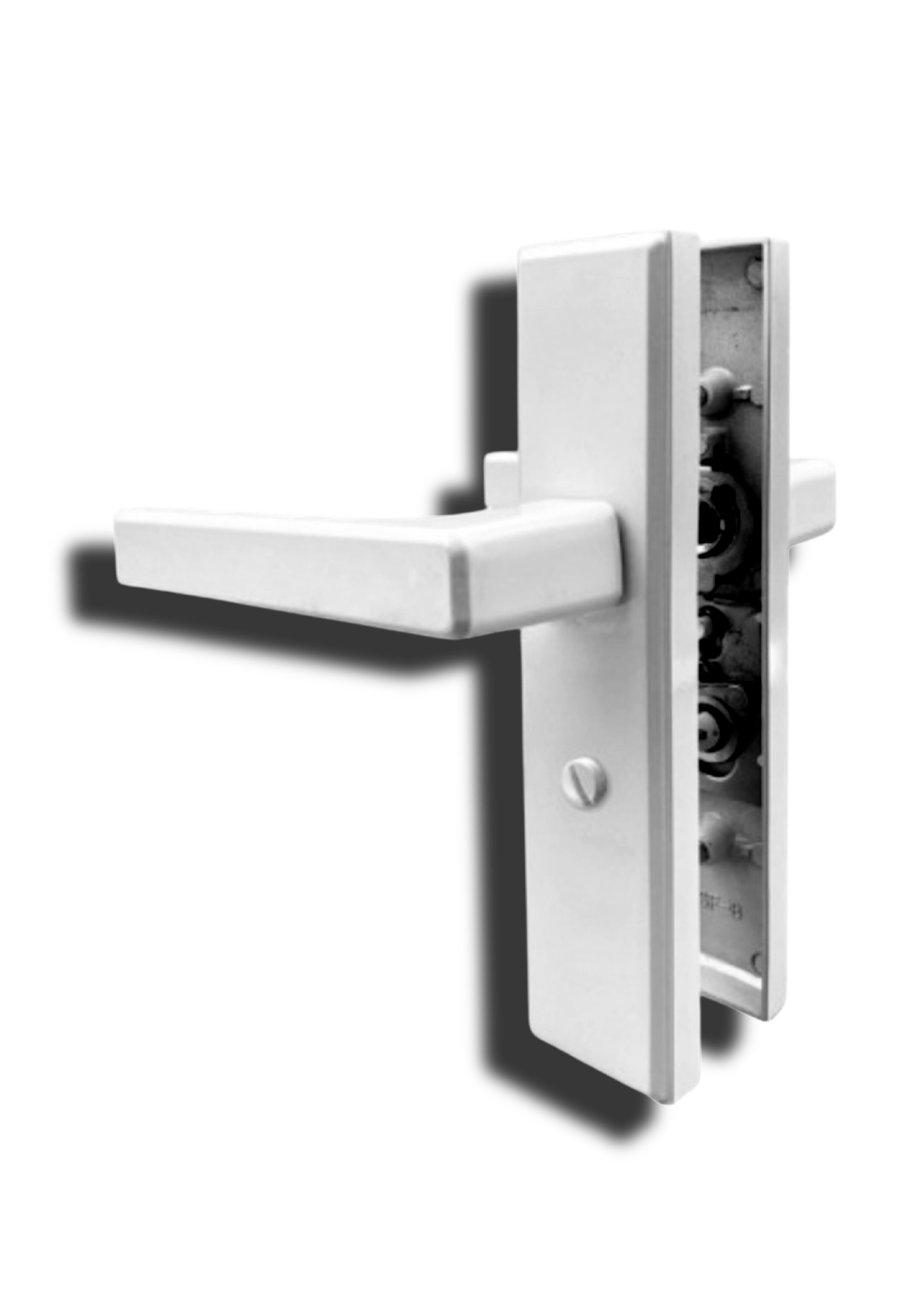 At the forefront of its design is the back plate, typically crafted from aluminum, which provides a sturdy foundation for the lever handle and locking mechanism.