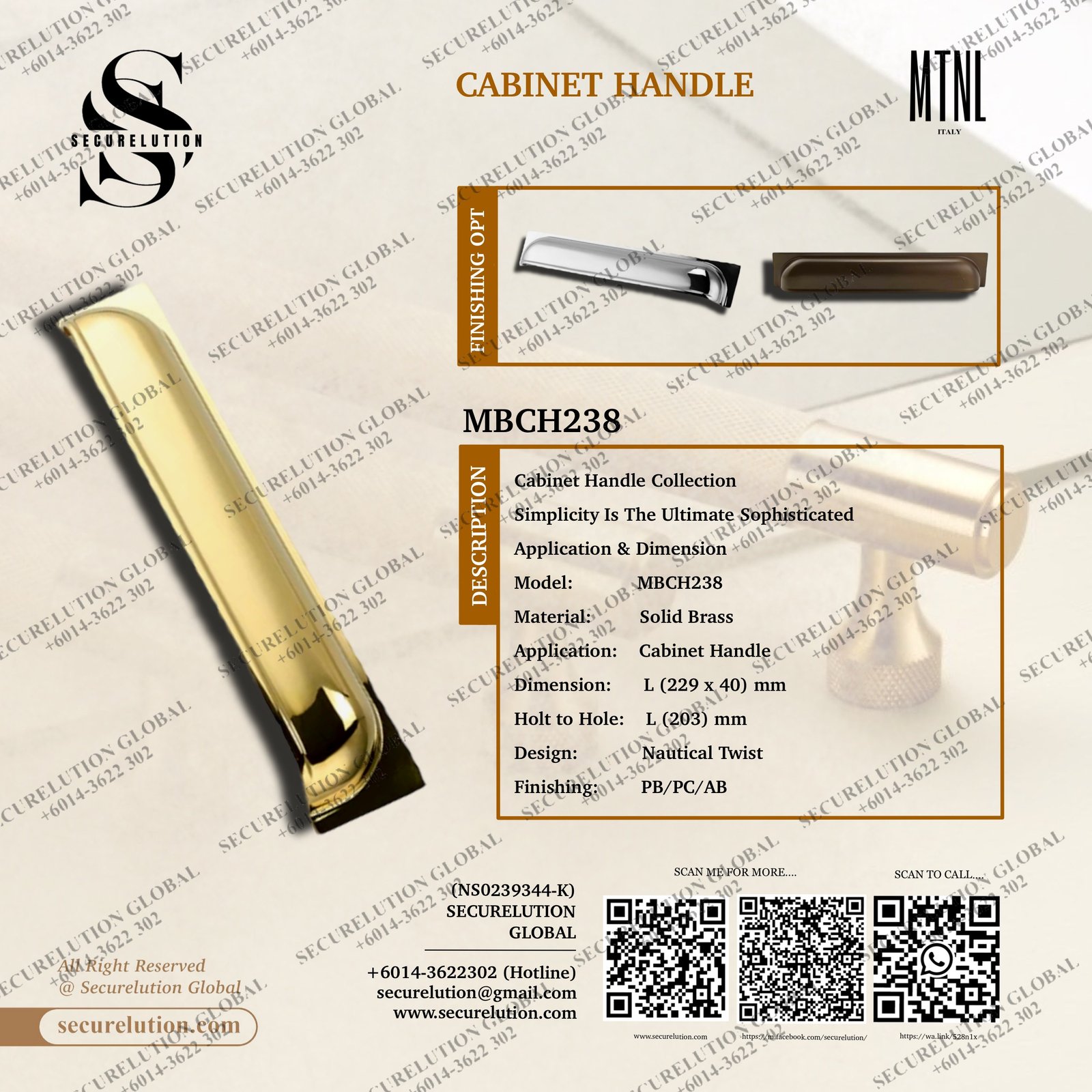 Material:         Solid Brass