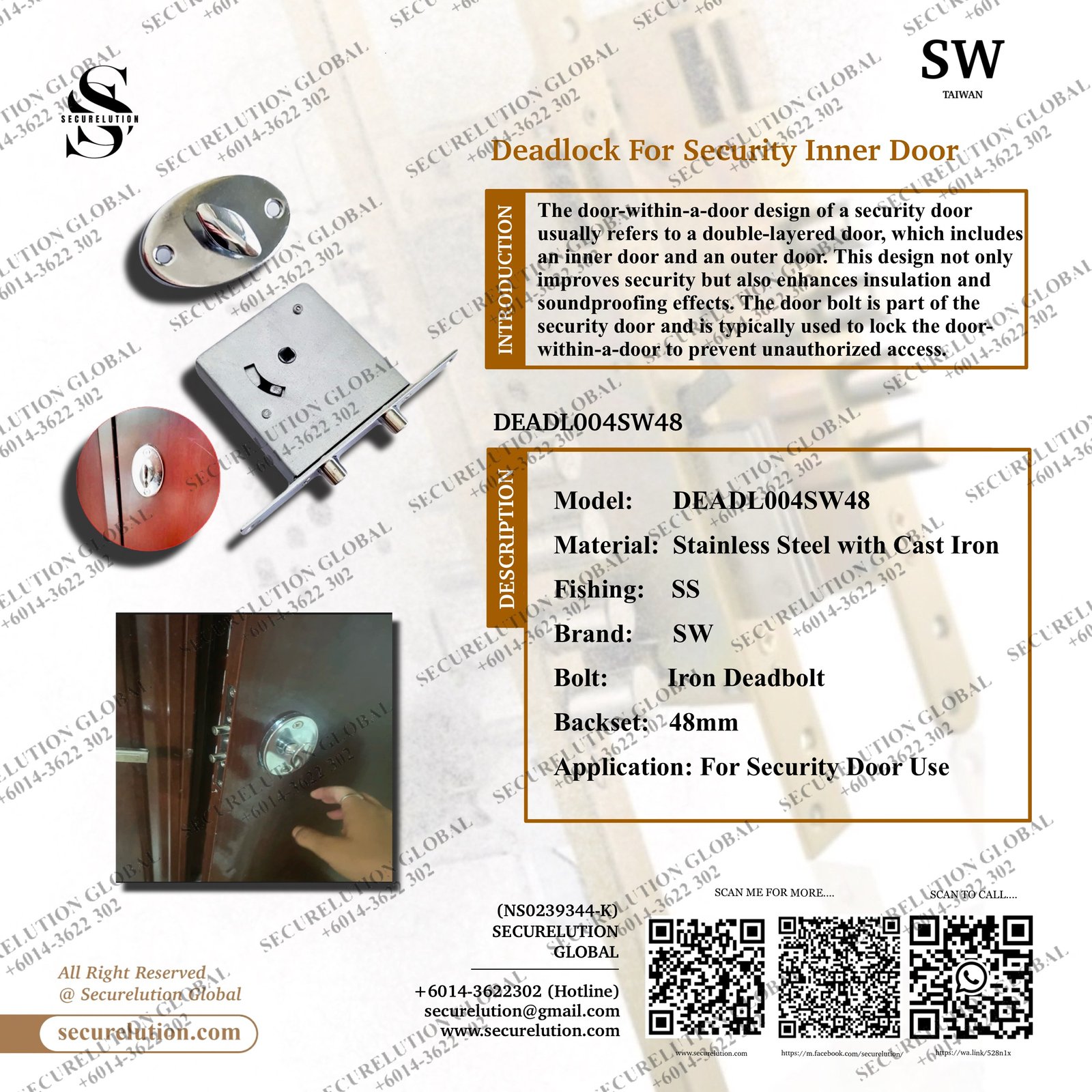 Deadlock For Security Inner Door