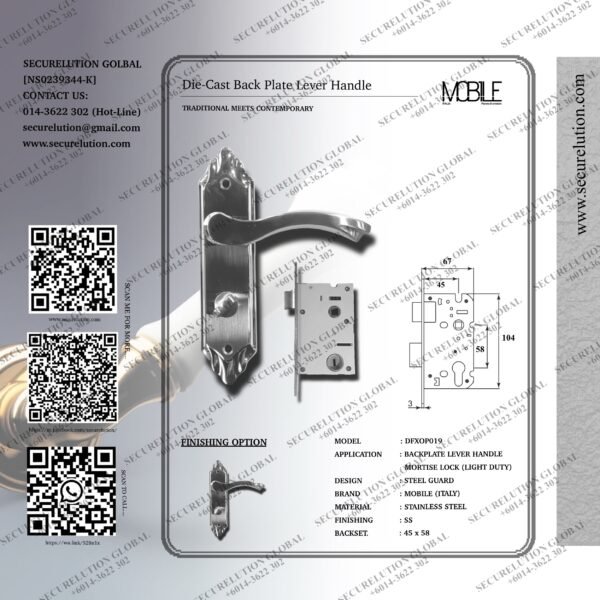 The “SteelGuard Lever Lock” represents a perfect fusion of modern design and uncompromising security, making it an essential component for both residential and commercial spaces. Crafted from high-quality stainless steel, this lever handle lock is not only exceptionally durable but also resistant to tarnishing, rust, and corrosion, ensuring long-lasting performance in various environments.