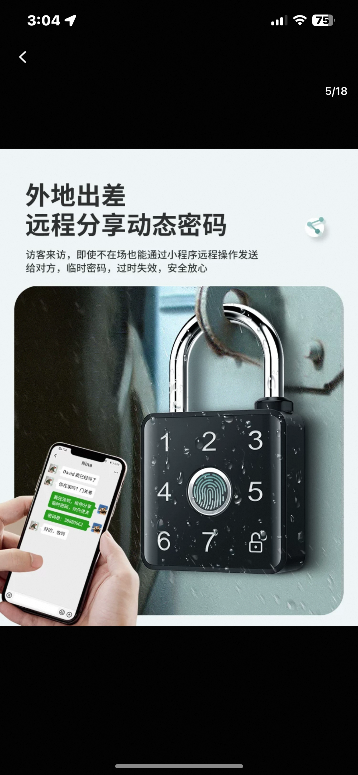– Share temporary passwords remotely through a mini-program, even when you are not present, ensuring guests can access the padlock. These passwords are time-sensitive and expire after use, providing peace of mind.
