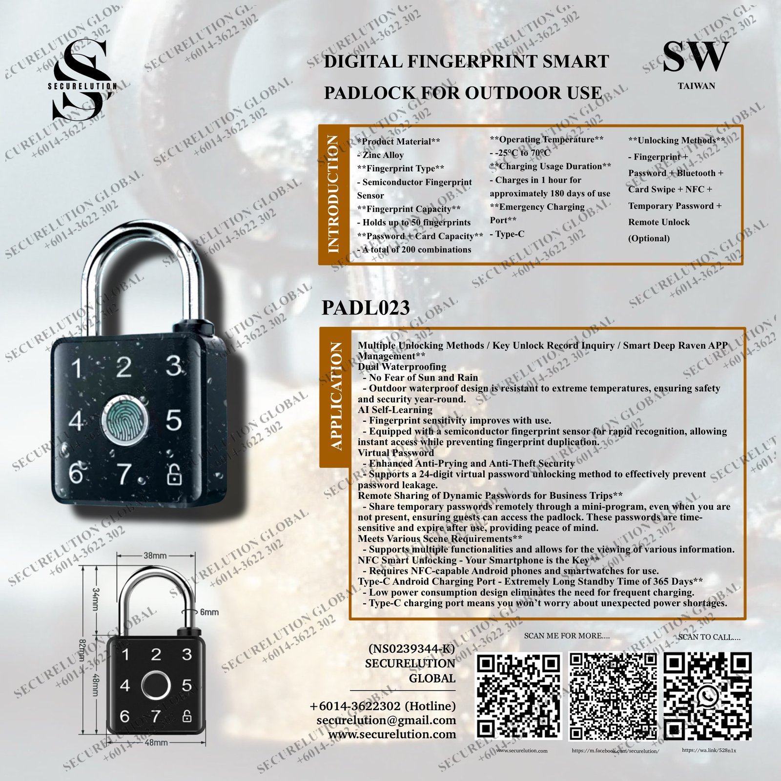 DIGITAL FINGERPRINT SMART PADLOCK FOR OUTDOOR USE