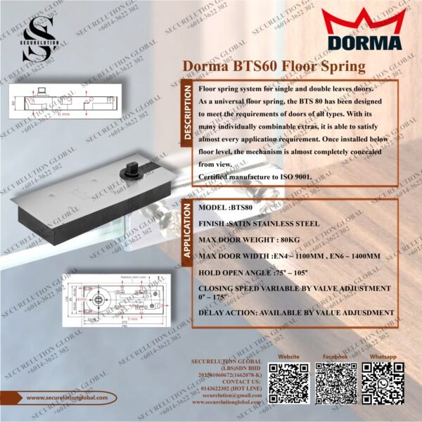 Overall, Dorma floor hinges are a trusted and effective solution for managing large, heavy doors in various settings. Their combination of durability, controlled functionality, and design versatility makes them a popular choice for architects, builders, and building owners looking to enhance the safety, accessibility, and aesthetic appeal of their spaces.
