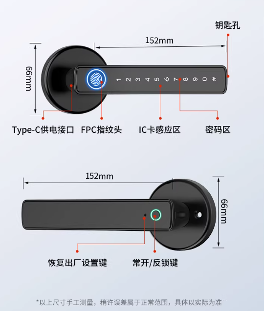 - Physical Key: Includes 3 traditional keys for emergency backup.
