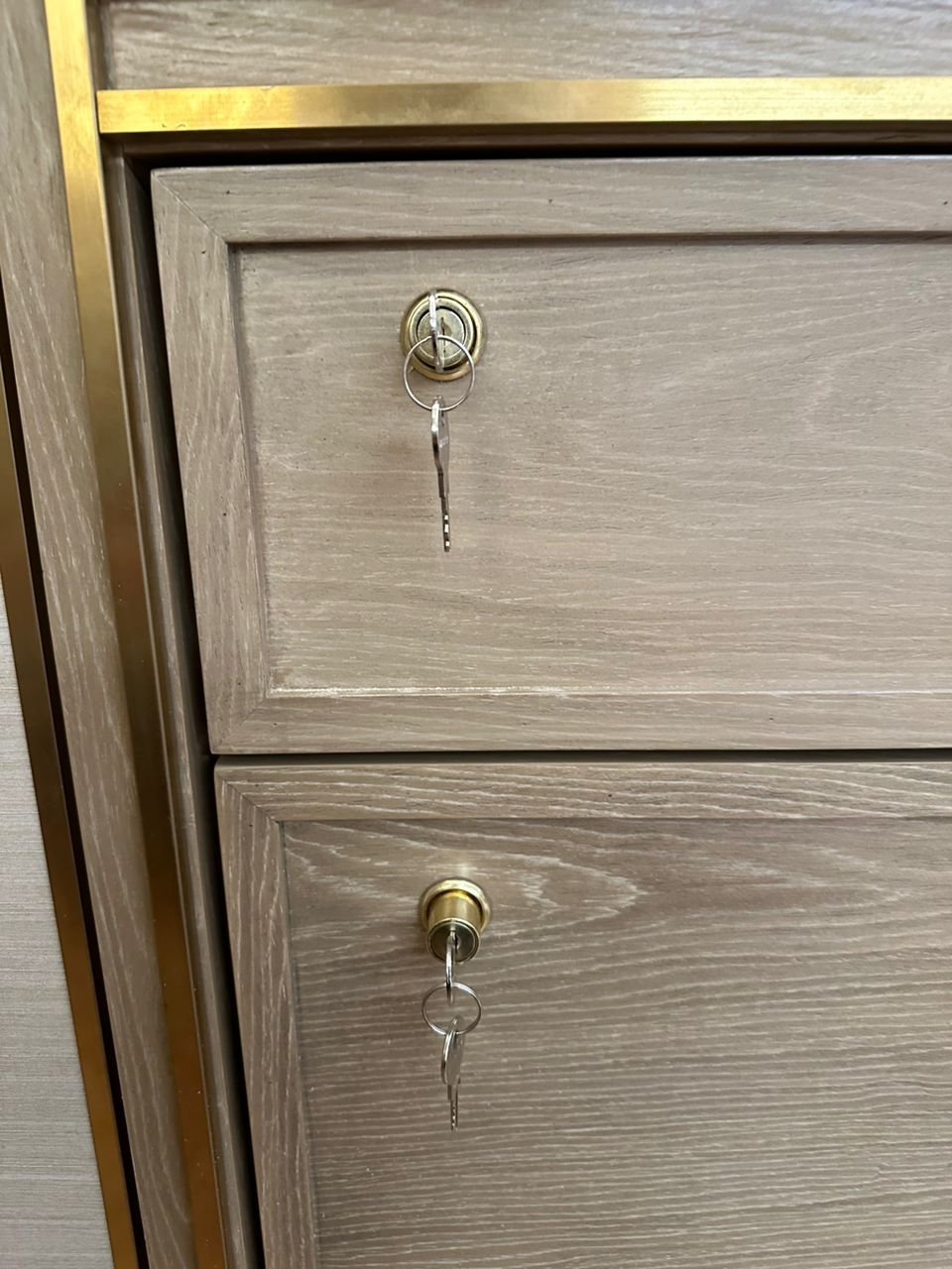 The reflective surface of the gold finish catches the light, creating a dazzling display that draws the eye and commands attention. Its rich, warm hue evokes feelings of luxury and grandeur, instantly elevating the aesthetic appeal of the drawer and the surrounding space.