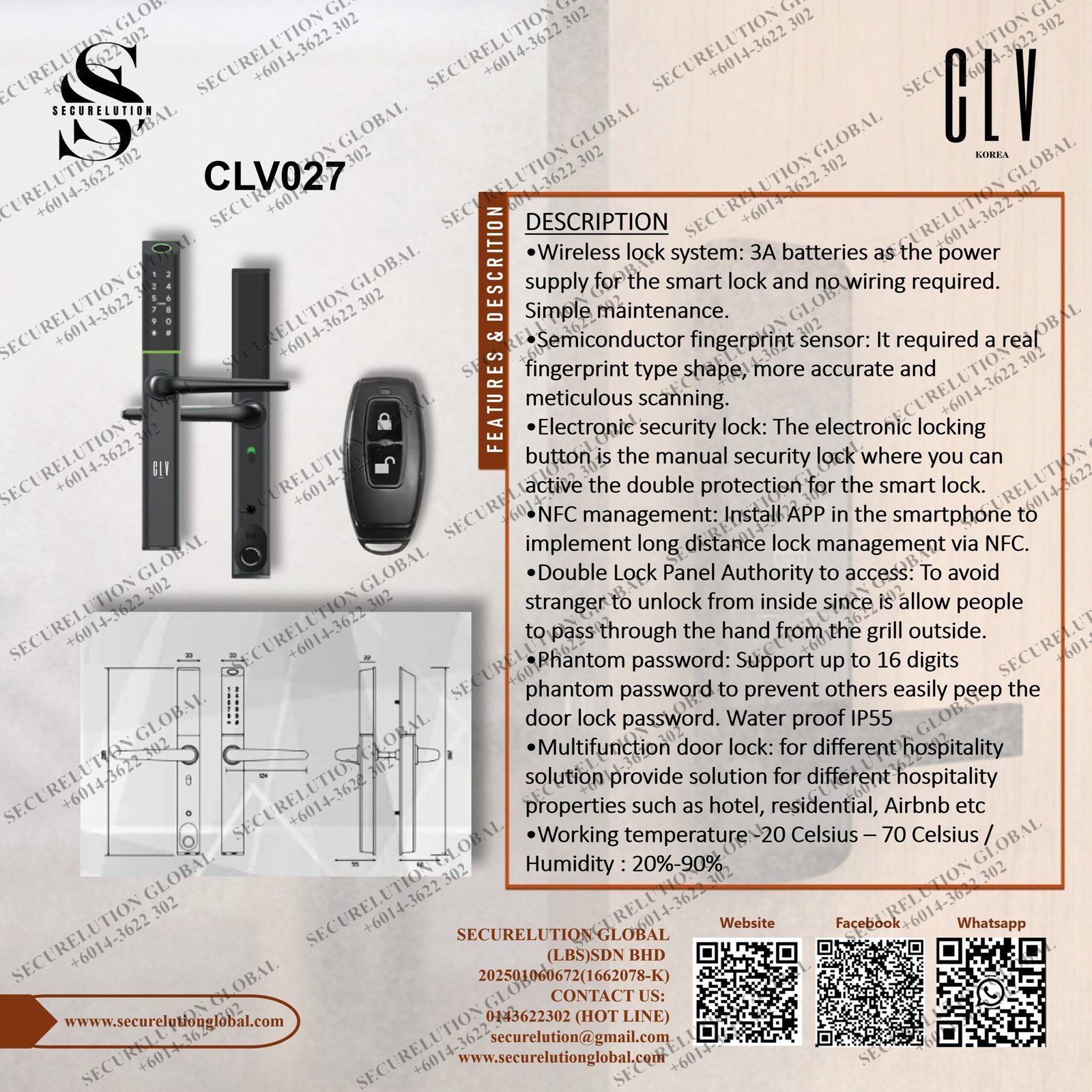 The CLV027 grill digital door lock represents a new era in security for metal grill doors, combining a minimalist, “slik” handle design with high-level access authority. Designed specifically for the narrow frames of modern grills, this lock eliminates the bulk of traditional digital locks while providing a seamless, symmetrical aesthetic on both sides of the door.