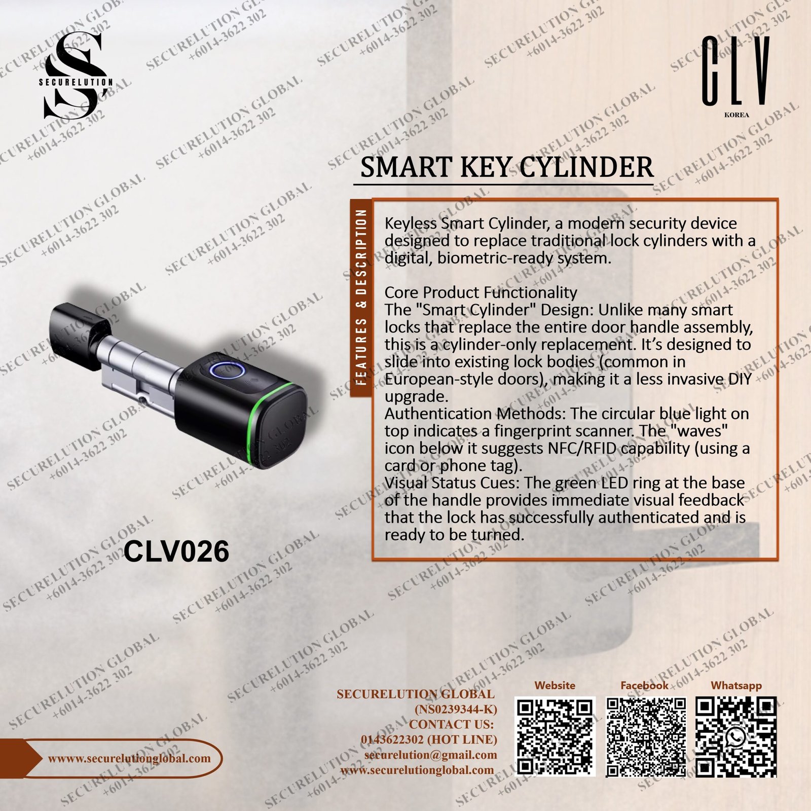 CLV026 Keyless Smart Cylinder