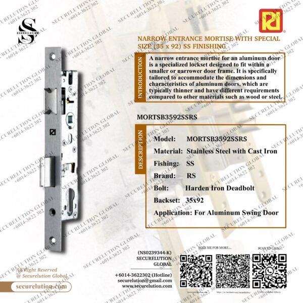 NARROW ENTRANCE MORTISE WITH SPECIAL SIZE (35 x 92) SS FINISHING