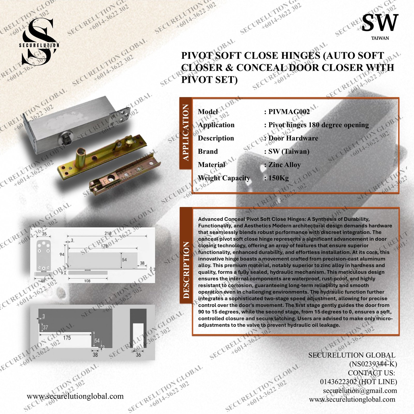 Advanced Conceal Pivot Soft Close Hinges: A Synthesis of Durability, Functionality, and Aesthetics Modern architectural design demands hardware that seamlessly blends robust performance with discreet integration. The conceal pivot soft close hinge represents a significant advancement in door closing technology, offering an array of features that ensure superior functionality, enhanced durability, and effortless installation. At its core, this innovative hinge boasts a movement crafted from precision-cast aluminum alloy. This premium material, notably superior to zinc alloy in hardness and quality, forms a fully sealed, hydraulic mechanism. This meticulous design ensures the internal components are waterproof, rust-proof, and highly resistant to corrosion, guaranteeing long-term reliability and smooth operation even in challenging environments. The hydraulic function further integrates a sophisticated two-stage speed adjustment, allowing for precise control over the door’s movement. The first stage gently guides the door from 90 to 15 degrees, while the second stage, from 15 degrees to 0, ensures a soft, controlled closure and secure latching. Users are advised to make only micro-adjustments to the valve to prevent hydraulic oil leakage.