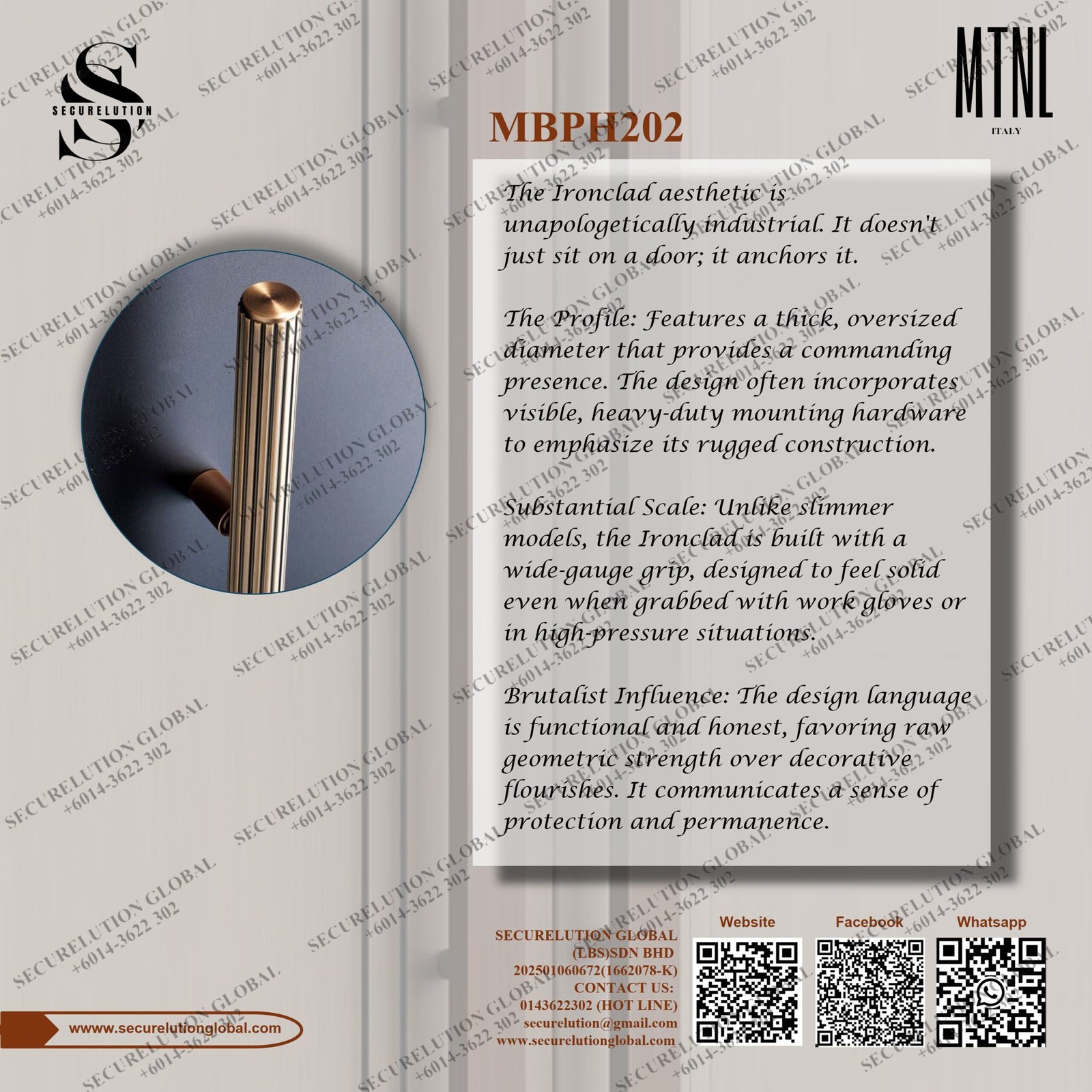 The Ironclad aesthetic is unapologetically industrial. It doesn’t just sit on a door; it anchors it.