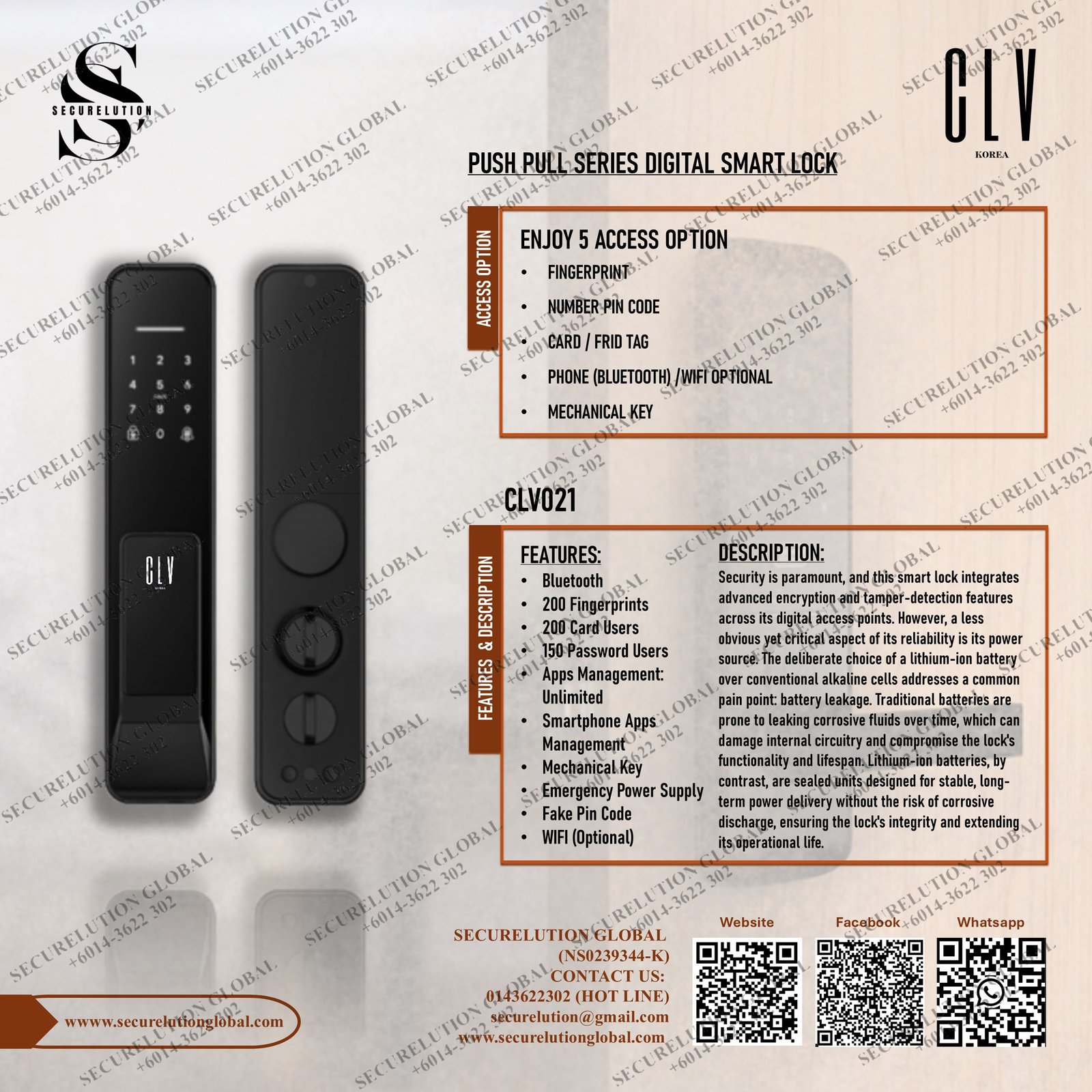 CLV021 Push Pull Series Digital Smart Lock