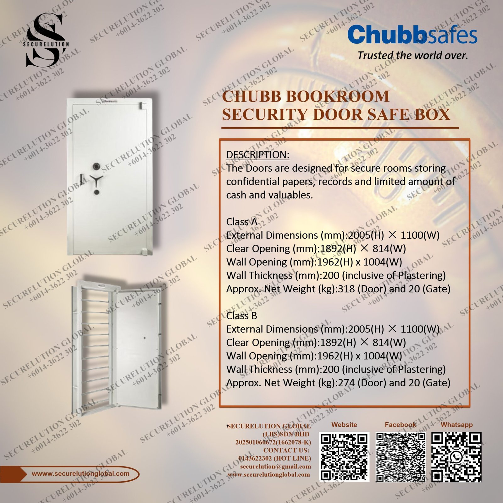 The Doors are designed for secure rooms storing confidential papers, records and limited amount of cash and valuables.