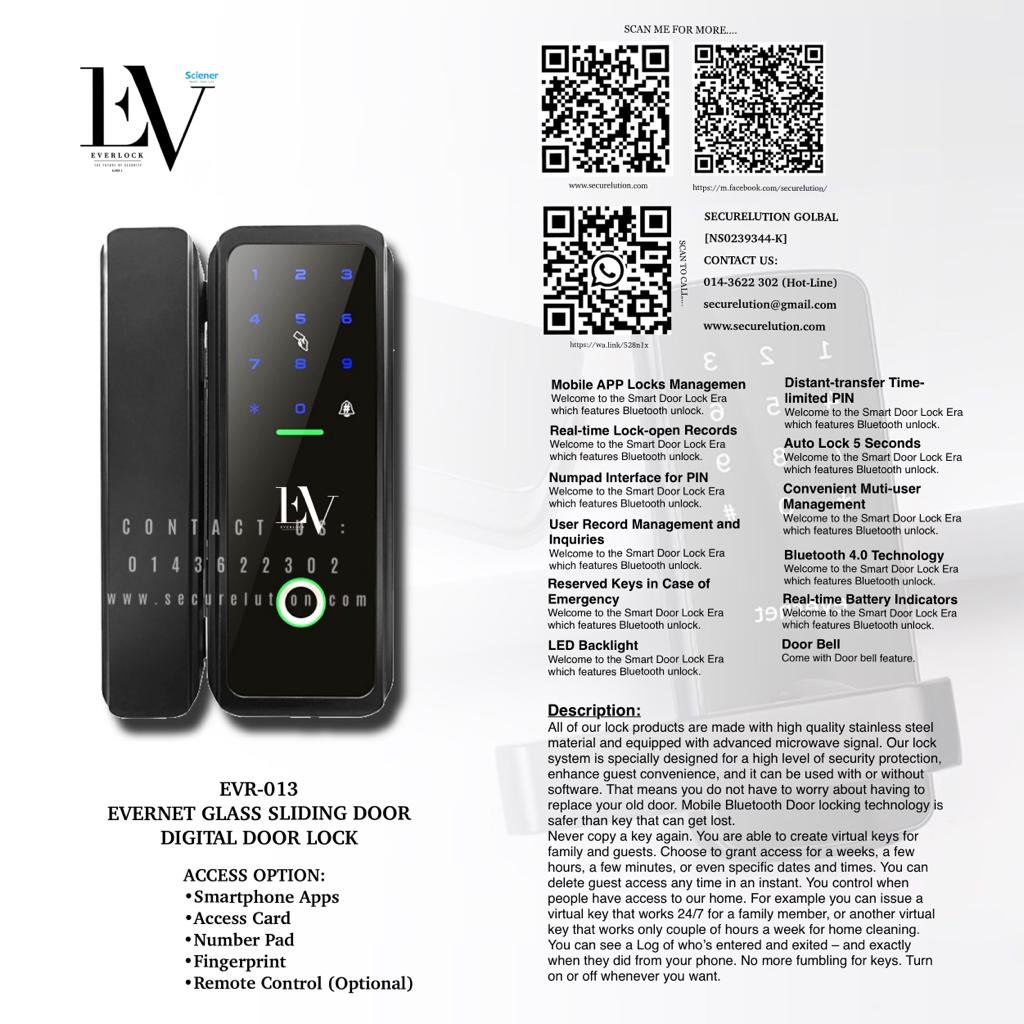 Evernet Glass Sliding Door Digital Door Lock