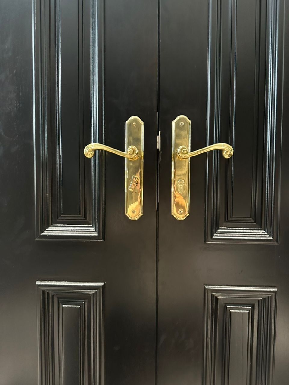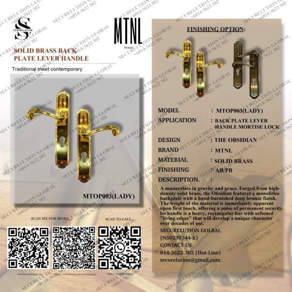 A masterclass in gravity and grace. Forged from high-density solid brass, the Obsidian features a monolithic backplate with a hand-burnished deep bronze finish. The weight of the material is immediately apparent upon first touch, offering a sense of permanent security. Its handle is a heavy, rectangular bar with softened “living edges” that will develop a unique character over decades of use.