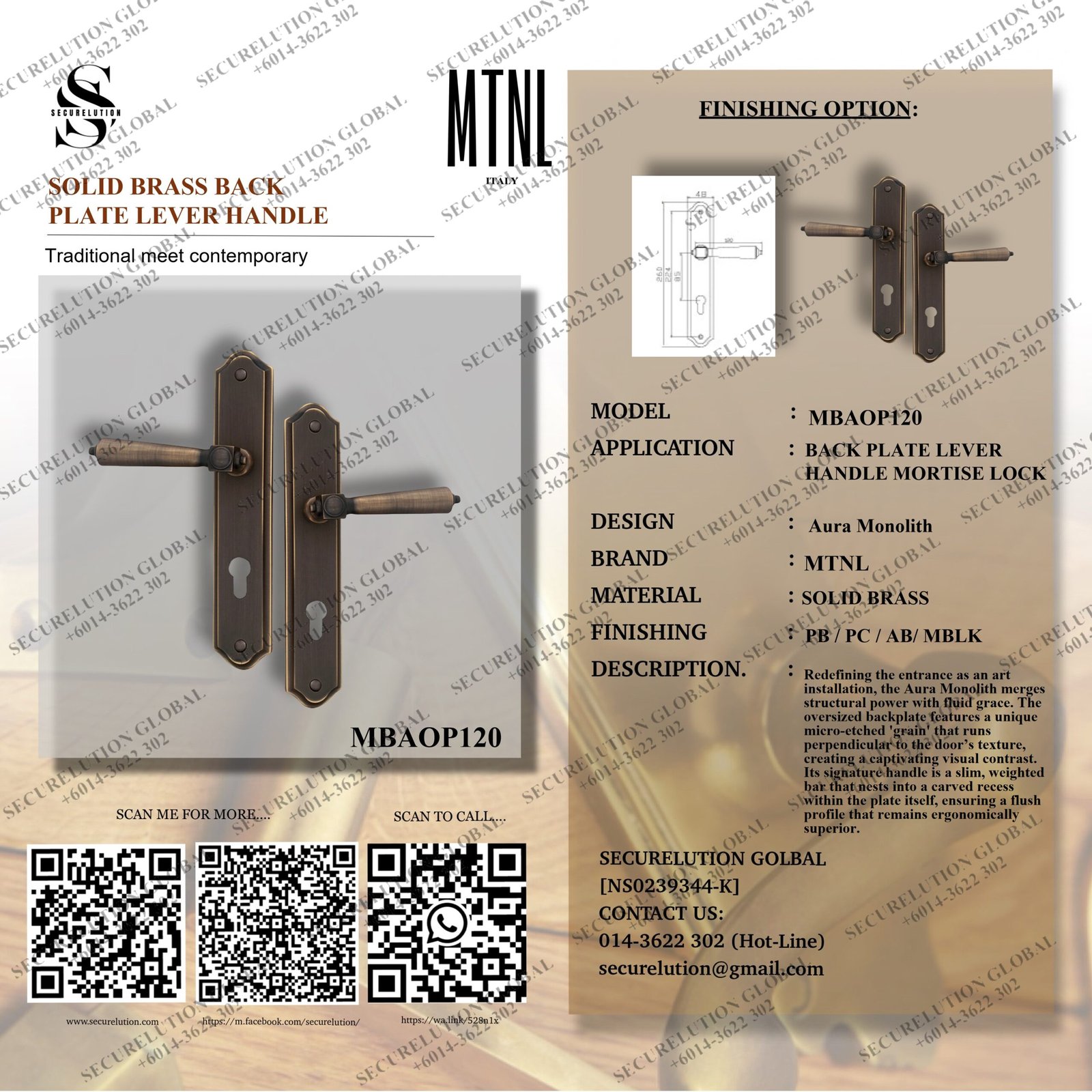 SOLID BRASS BACK PLATE LEVER HANDLE
