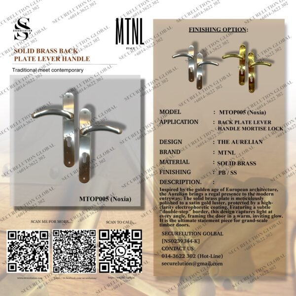 Inspired by the golden age of European architecture, the Aurelian brings a regal presence to the modern entryway. The solid brass plate is meticulously polished to a satin gold luster, protected by a high-clarity electrophoretic coating. Featuring a subtle “double-step” border, this design captures light at every angle, framing the door in a warm, inviting glow. It is the ultimate statement piece for grand-scale timber doors.