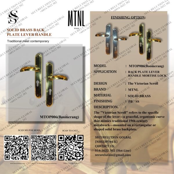The “Victorian Scroll” refers to the specific shape of the lever—a graceful, ergonomic curve that mimics traditional 19th-century metalwork—mounted on a rectangular or shaped solid brass backplate.