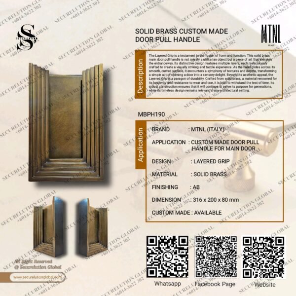 The Layered Grip is a testament to the fusion of form and function. This solid brass main door pull handle is not merely a utilitarian object but a piece of art that elevates the entranceway. Its distinctive design features multiple layers, each meticulously crafted to create a visually striking and tactile experience. As the hand glides across its smooth, curved surface, it encounters a symphony of textures and depths, transforming a simple act of opening a door into a sensory delight.