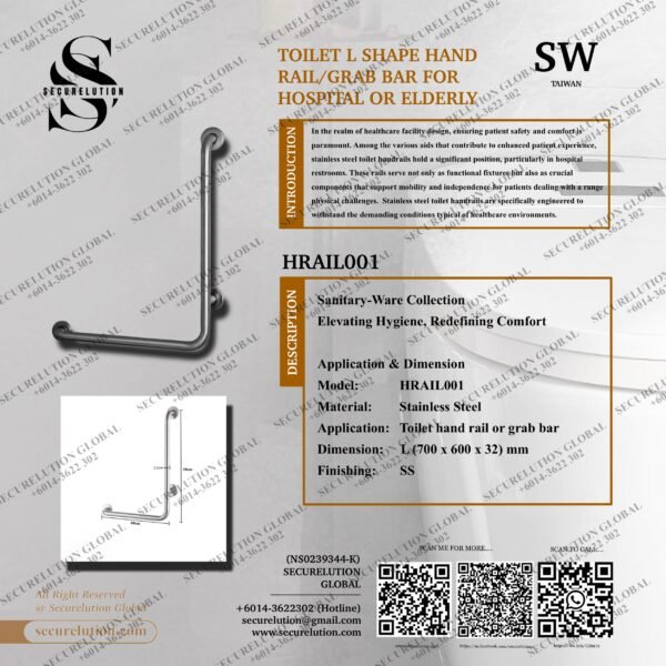 TOILET L SHAPE HAND RAIL/GRAB BAR FOR HOSPITAL OR ELDERLY