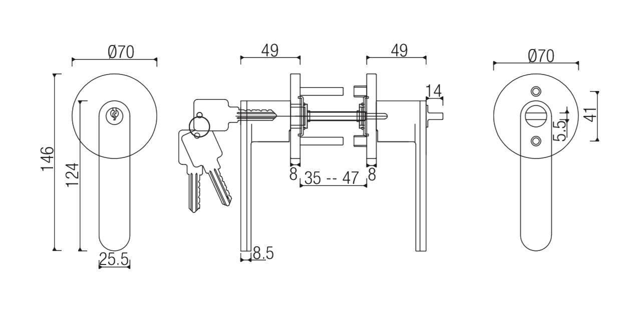 – Backset : Universal latch standard, fits either 60/70 mm