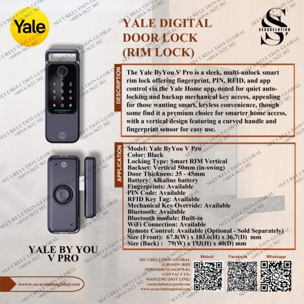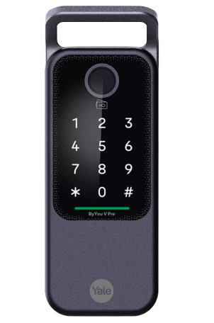 The Yale ByYou V Pro is a sleek, multi-unlock smart rim lock offering fingerprint, PIN, RFID, and app control via the Yale Home app, noted for quiet auto-locking and backup mechanical key access, appealing for those wanting smart, keyless convenience, though some find it a premium choice for smarter home access, with a vertical design featuring a curved handle and fingerprint sensor for easy use.